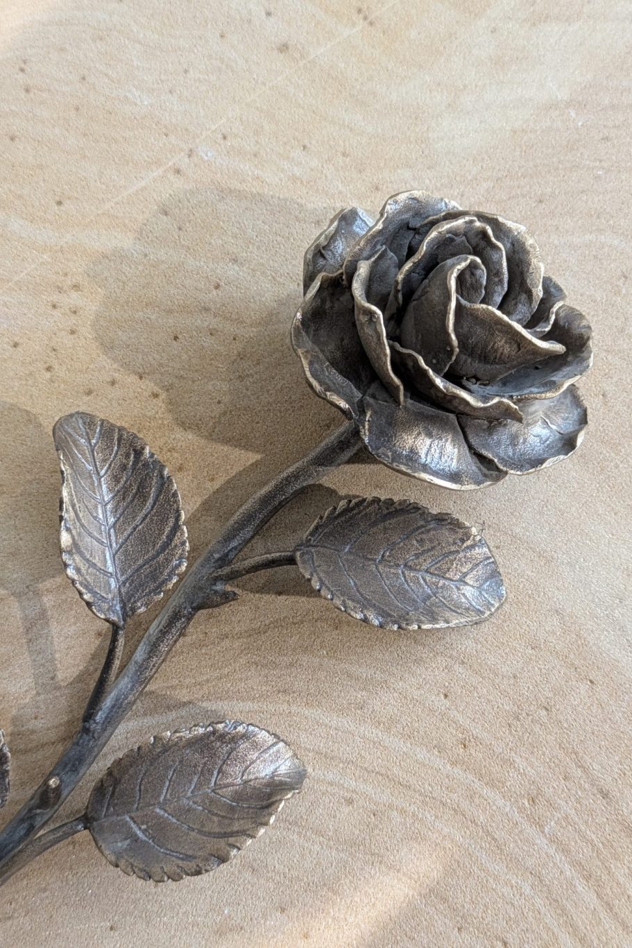 Himalayaplatte mit Rosen-Ornament aus Bronze.